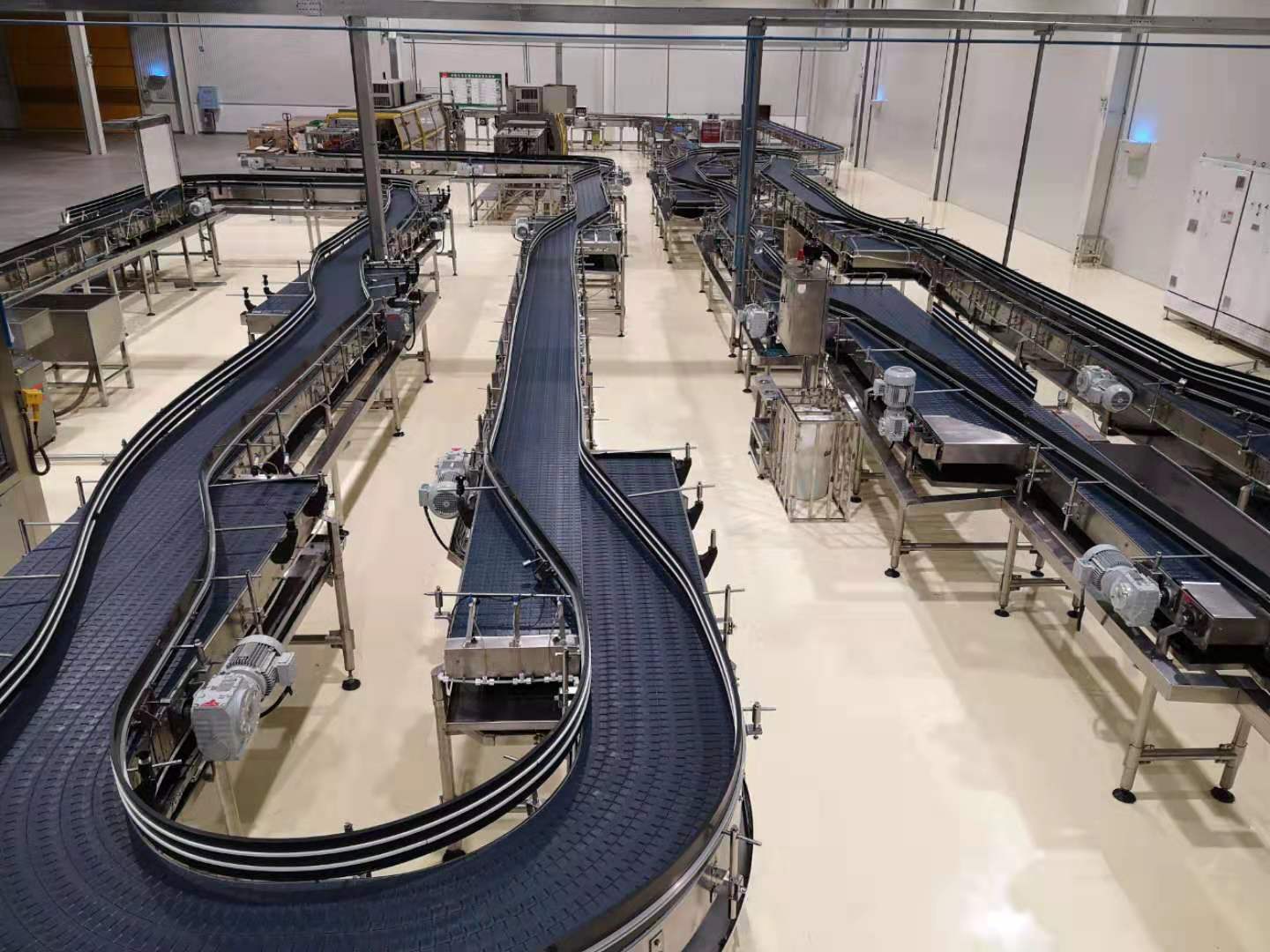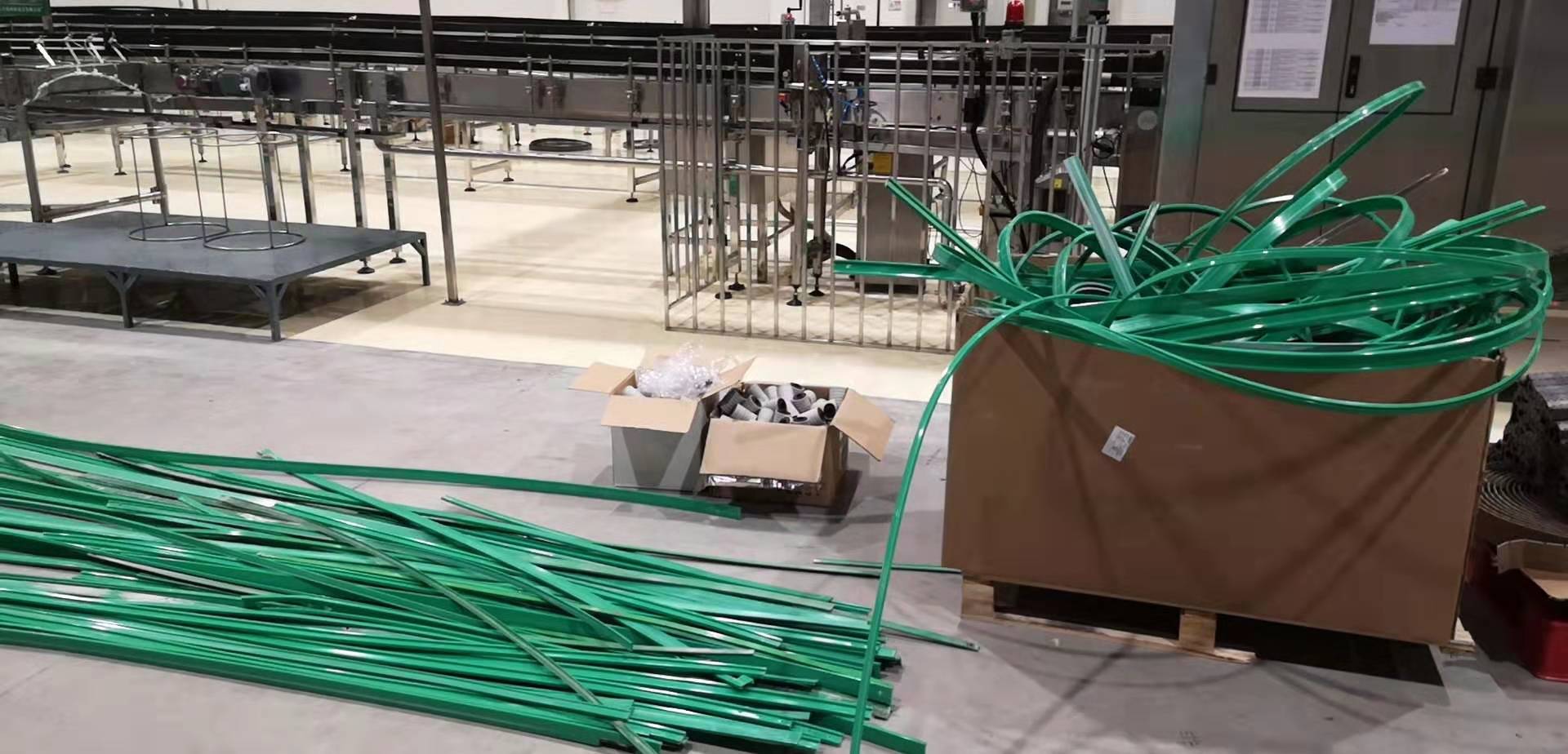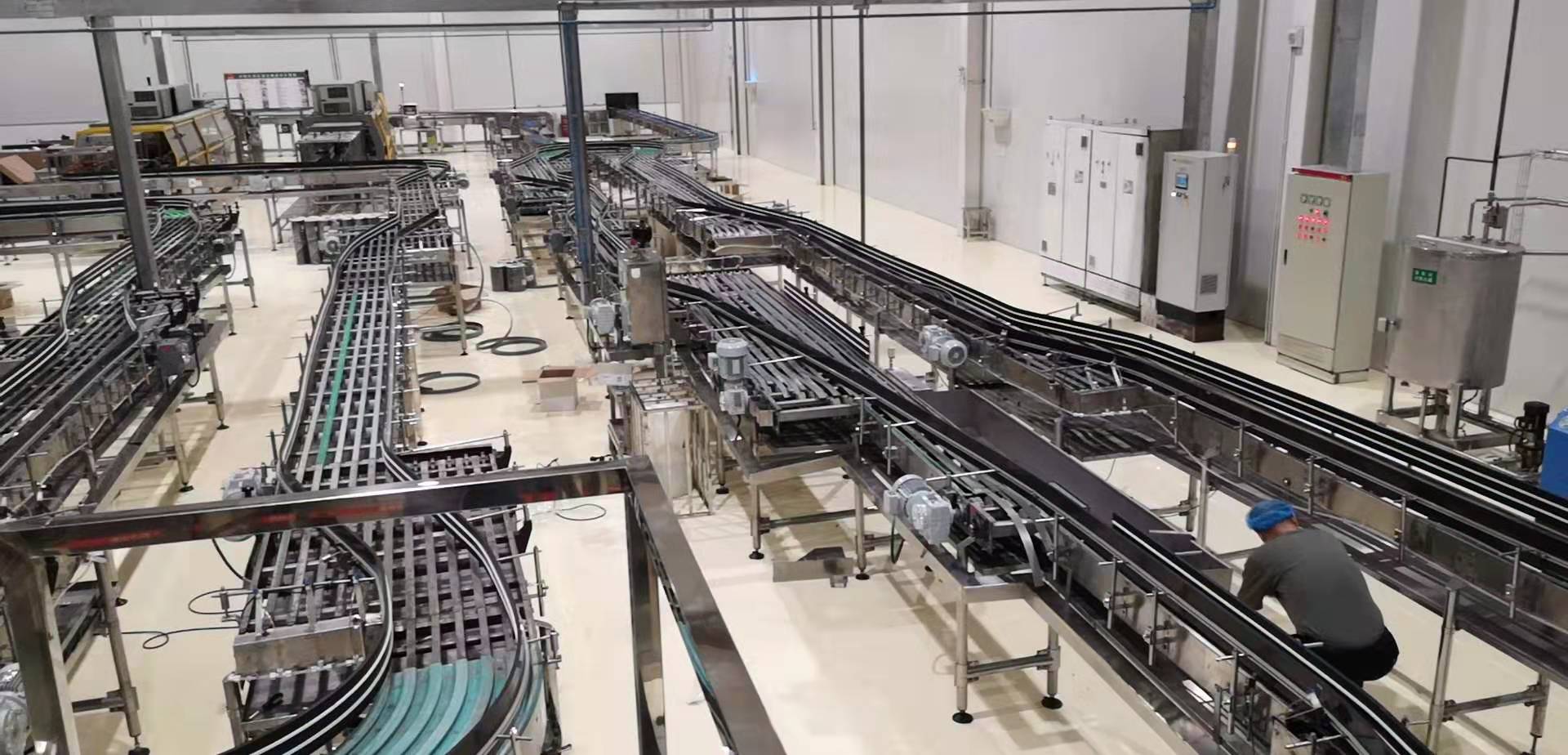 農夫山泉漠河工廠有一條其它 工廠搬遷過來的生產線,線上的產品較為陳舊,品種過于混雜,包括鏈板、耐磨條、彎道 、鏈輪、托輪等多數來自不同的廠家和品牌,屬于七拼八湊起來的設備。這樣的設備難以正常用于生產,并且不利于日常維護,潤滑液消耗也很大。